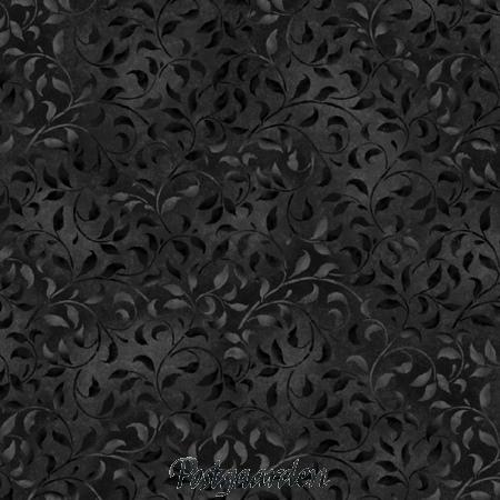 FQ7688 Sort med blade – patchworkstof
